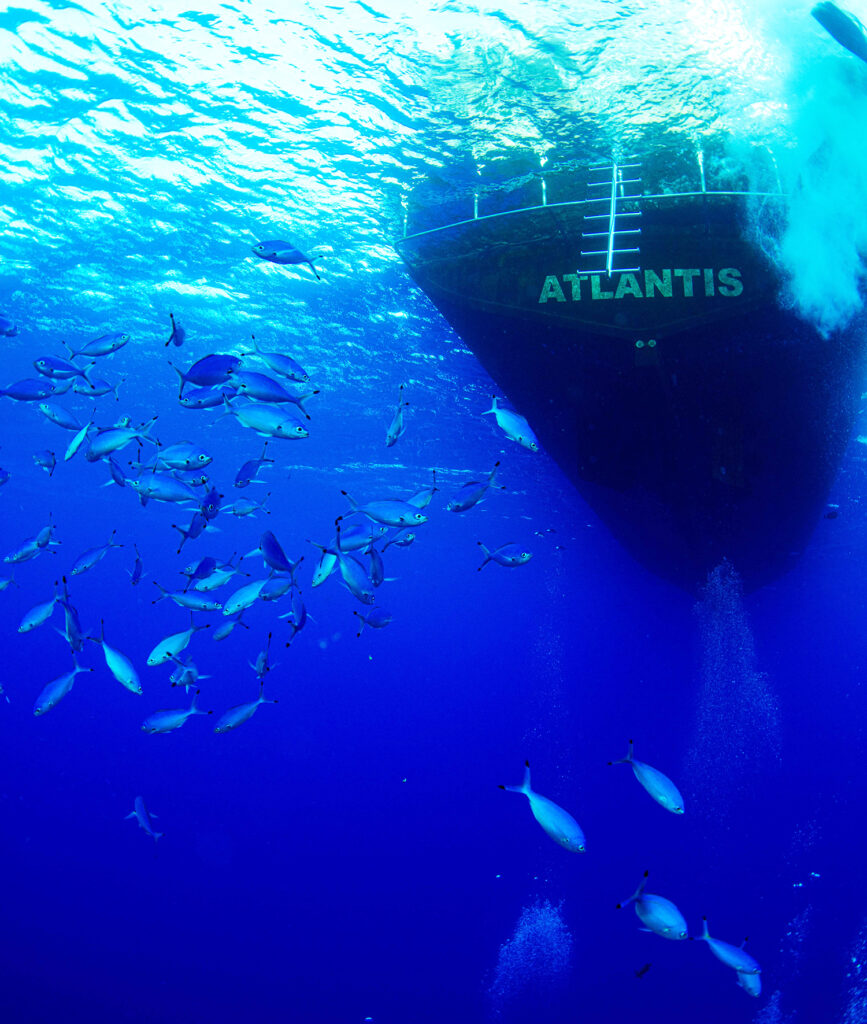 Retour à la surface, le spectacle se poursuit avec des dauphins jouant autour de l’étrave du bateau.